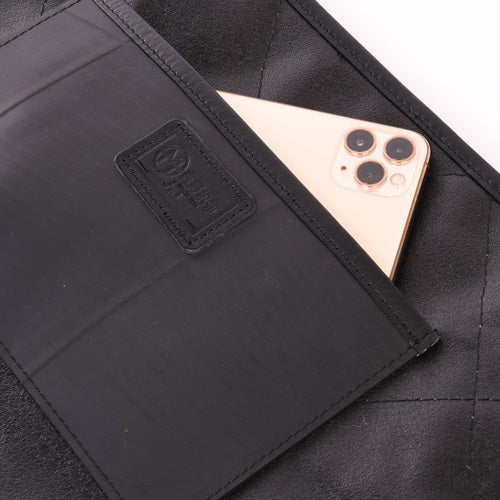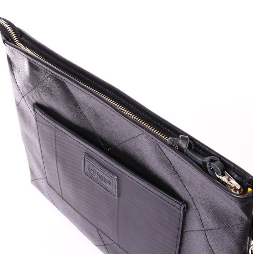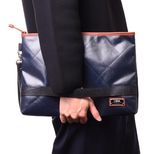海上自衛隊でも採用されている最強帆布にボンディング加工をし、さらにキルティング加工を施しました。 抜群の耐久性と衝撃吸収性能を誇り、PCやタブレットをそのまま収納することも可能です。 また、A4サイズの書類はもちろん。日常使いのものも機能的に収納可能。明るい内装で、暗闇でも中のものが見やすくなっております。 背面には、MAXサイズのスマホも収納可能なモバイルポケットとカードポケットを搭載。 2種類のホルダーを搭載し、安心のグリップ感を実現しました。 この森野帆布コラボ/キルティングクラッチバッグは、一個辺り約840gのCO2が削減されます
