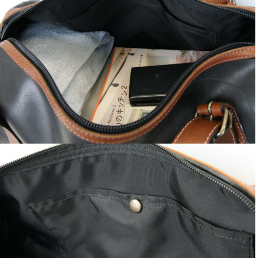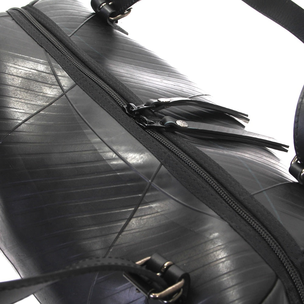 服を選ばずファッションに馴染むボストンバッグ。見た目以上の大容量の収納力、気軽に持ち運べるタフな素材なので、一泊程度の旅行やお出かけ時など様々なシーンで活躍する3WAYタイプボストンバッグ。内部の両サイドに小物などを収納できる2ポケット付きなので、細かな物なども奇麗に収納できます。廃タイヤチューブ自体の防水性や耐久性により、旅先での雨や泥といった過酷な環境でも安心です。 この製品はサンプル品だけの1点、特別モデルです。