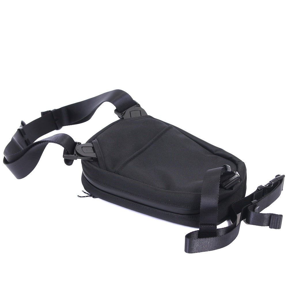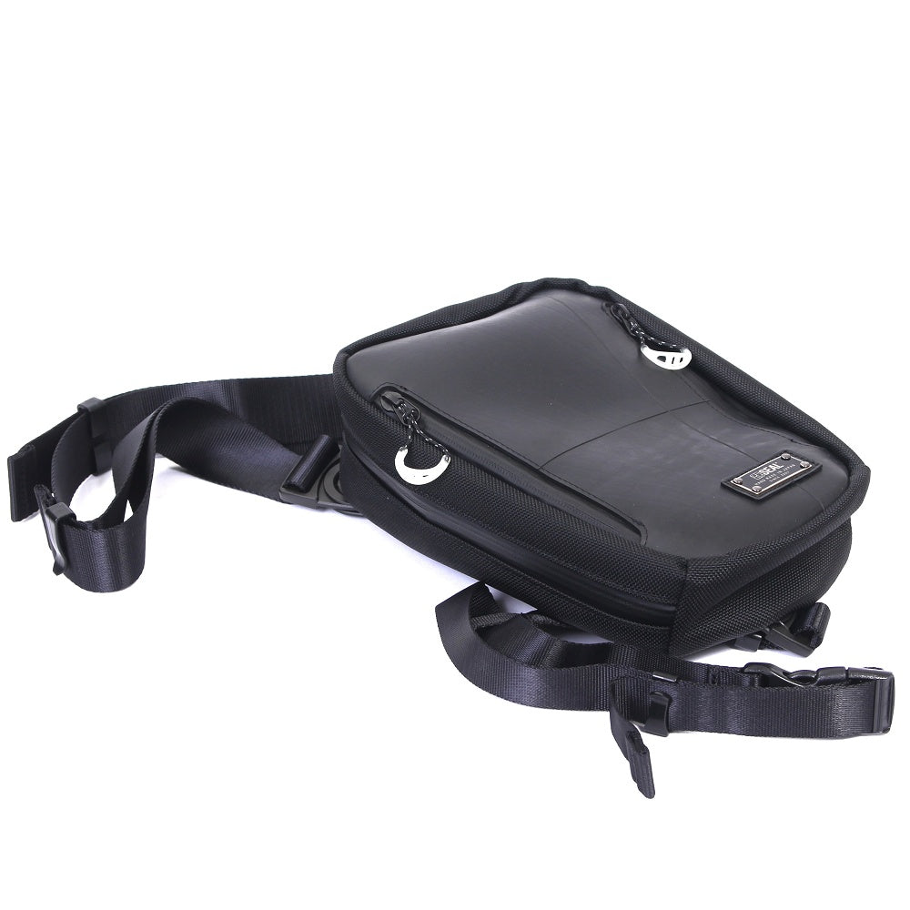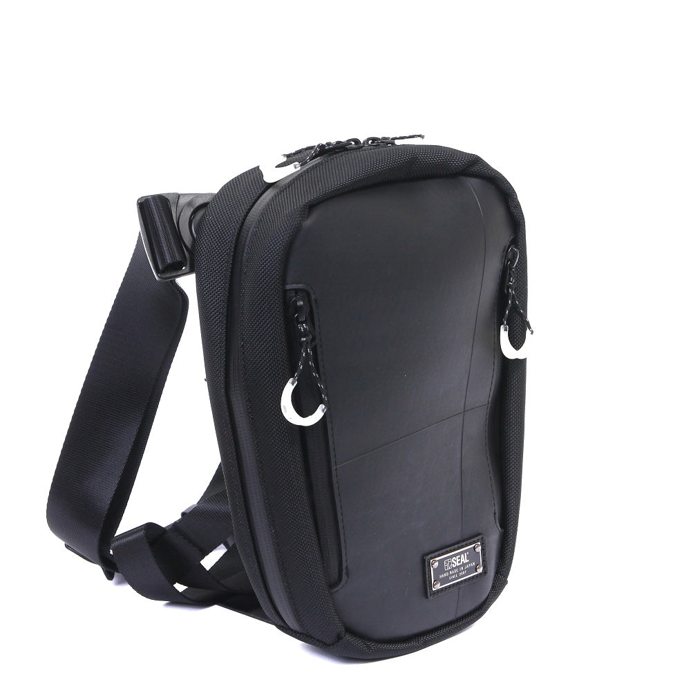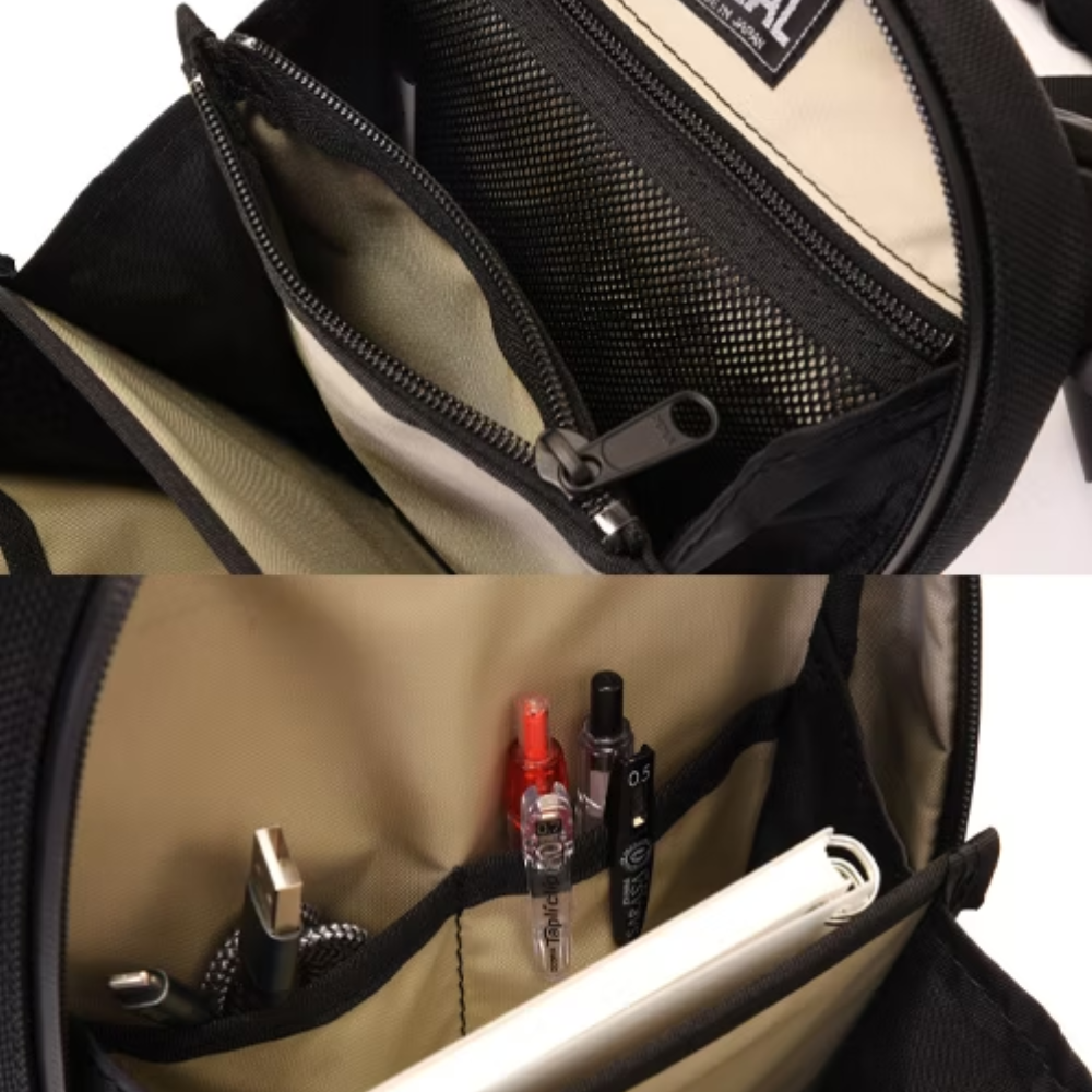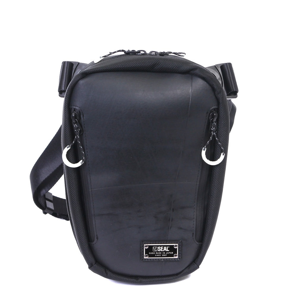 オーガナイズ性に優れた内装で、全てのものを自在に機能的に収納可能。 貴重な時間を無駄にせず、すばやく目的のものにアクセスできるレッグバッグです。 全面的に防水ナイロン、止水ファスナーを採用しており、雨や汚れなどを気にせずご利用いただけます。レッグベルトを外せば、そのままショルダーバッグとしてご利用いただける2way仕様。500mlサイズのボトルも収納可能なサイズ感で、自転車やバイク運転時の水分補給にも便利です。 前面には日常や外出先で頻繁に使用する、鍵や交通カード、スマホなどを収納可能なクイックポケットを搭載。引き手にはグローブなどをしていても、簡単に開閉出来る特殊な引き手を採用。蓄光素材で作られており、夜間でも問題なくご利用いただけます。 機能的な内装からは想像がつかない、シンプルな外装でどんなコーディネイトにも合うデザインになっております。 このオーガナイ