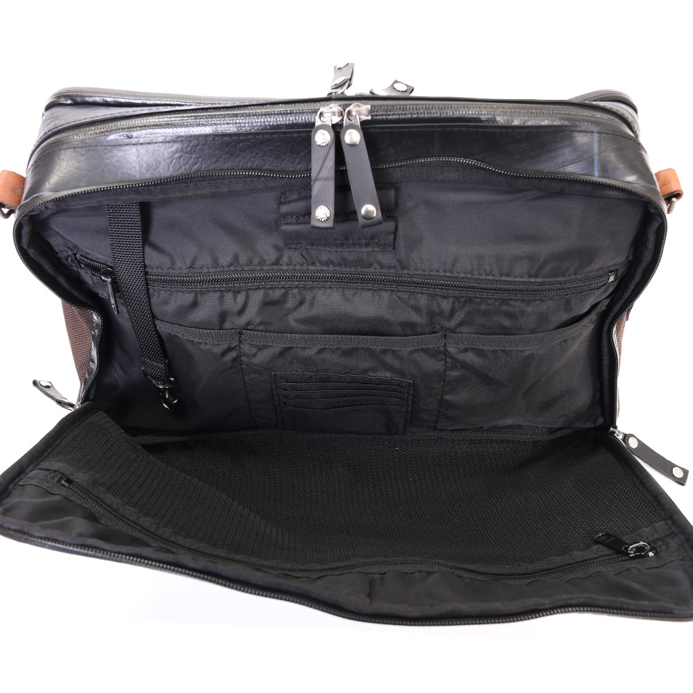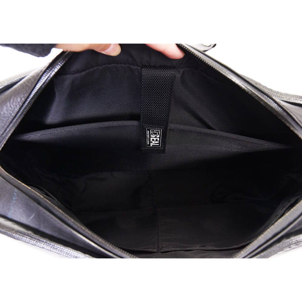 10以上のポケットを搭載し、ノートPC(Mac book pro 15inch以下のサイズのPC)・ipad・携帯電話・カメラなど、多種多様なモバイル機器を一度に収納することが出来るモバイラーズボストンバッグ。野暮ったくなりがちなモバイルバッグをスタイリッシュにデザインし、ビジネスでも普段使いでも持てるボストンバッグです。 2つのベルトを搭載しており、手持ち・肩掛け・ショルダーの3wayでの使用が可能。 また、止水ファスナーを使用する事により防水性能を飛躍的に高めており、雨に弱いモバイル機器に最適の商品となっております。 このモバイラーズボストンバッグは、一個辺り約2520gのCO2が削減されます。