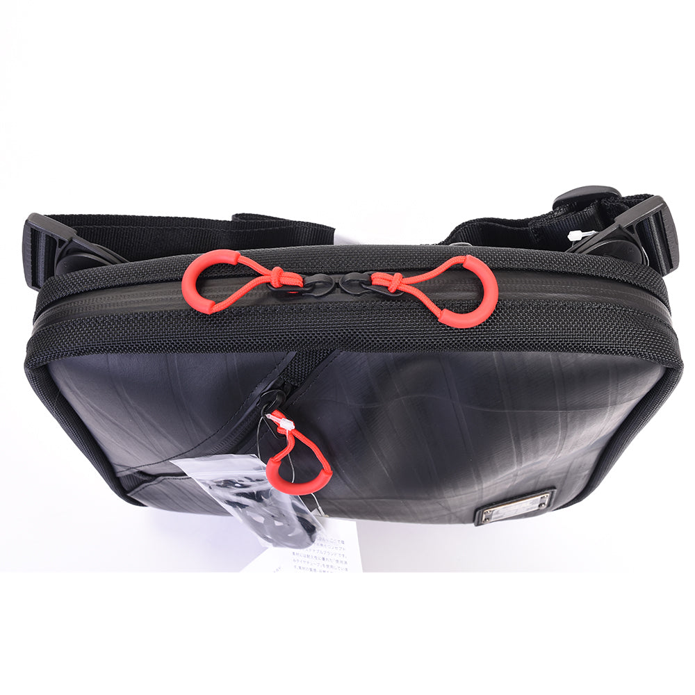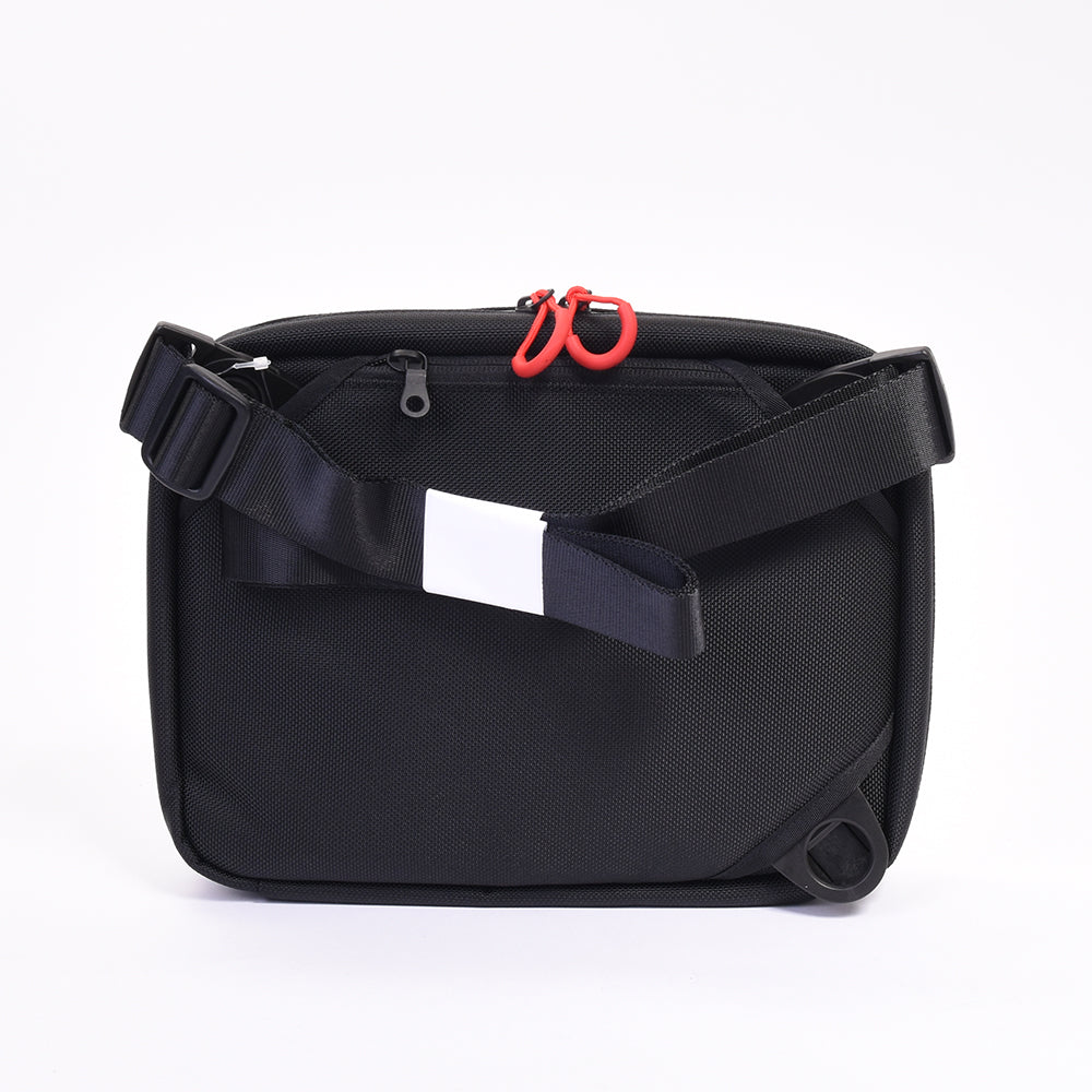 「デジタル時代のブリーフケース」大きめサイズのオーガナイザーショルダーバッグ。 オーガナイズ性に優れた内装で、全てのものを自在に機能的に収納可能。 貴重な時間を無駄にせず、すばやく目的のものにアクセスできるショルダーバッグのMAXサイズです。 11インチのタブレットも楽々収納可能なサイズ感。 前面には日常や外出先で頻繁に使用する、鍵や交通カード、スマホなどを収納可能なクイックポケットを搭載。 機能的な内装からは想像がつかない、シンプルな外装でどんなコーディネイトにも合うデザインになっております。 ショルダーバックルは取り付け位置が3箇所あり、付け替えると体にフィットするスリングバッグに変身。 電車に乗る際や自転車、バイクなどでも邪魔になりません。 また、ショルダーストラップは脱着可能になっており、バッグインバッグやクラッチバッグとしてもご使用になれます。 素材は全面的に防水素材を採用しており、雨や汚れなどを気にせずご利用いただけます。 この脱着可能なショルダーバックルは回転駆動式になっており、ショルダーの長さや体型に合わせて自在に調節してくれます。 このオーガナイザーショルダーバッグ MAXは、一個辺り約1575gのCO2が削減されます。