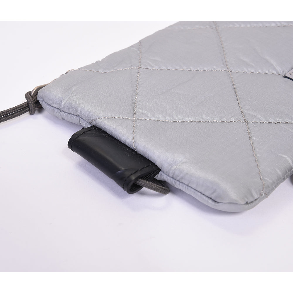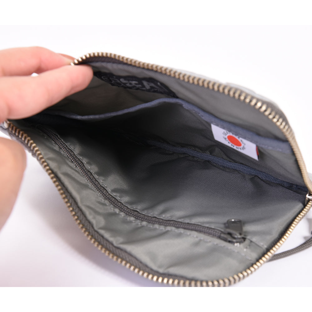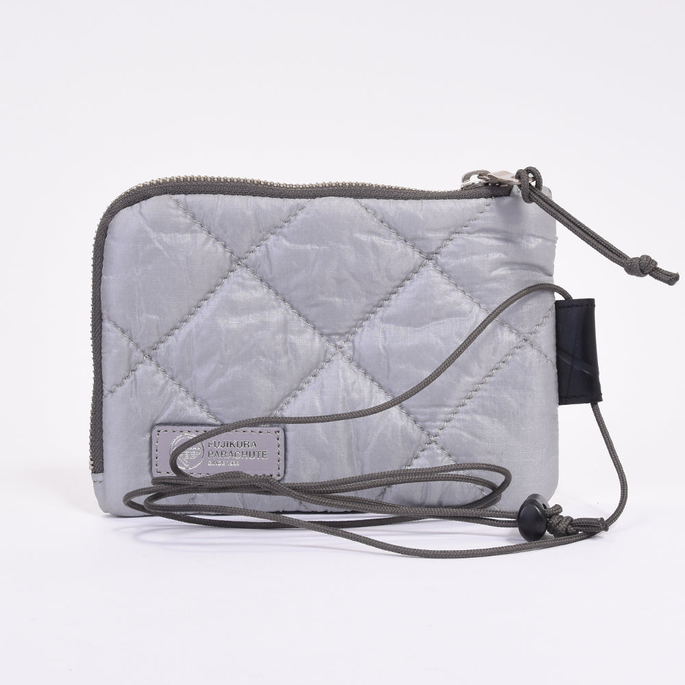 手ぶら派大人のための「超軽量ネックウォレット」が新登場! 自衛隊でも採用される、非常に軽量で丈夫なパラシュート素材 「藤倉パラシュート」をキルティング加工した、わずか約70gの超軽量ネックウォレット。 非常に軽いので、首や肩にかかる負担を最大限軽減します。 秀逸なシルエットのシンプルなボディに巾着型の形状がポイントのアイテム。 お札やコイン、カードのほか、iPhoneも収納可能でこれひとつでお出掛けも可能です。 ショルダーは自由に調節可能、首掛け、斜め掛けと様々なコーディネートに対応します。 この藤倉航装コラボ/ネックウォレット AIR MODELは、一個辺り約150gのCO2が削減されます。