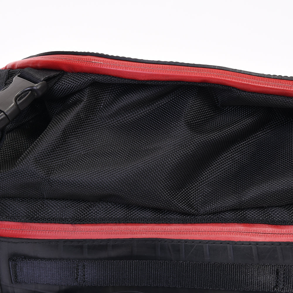約10cmの拡張機能を搭載したワンショルダーバッグのエクスパンダブルモデル。 前面コンパートメントに拡張機能を備えており、荷物が増えても問題なく対処できます。 多彩な収納ポケットを搭載し、自分のスタイルに合わせて小分けが可能。9.7インチタブレットも収納可能な緩衝材ポケット、 両サイドから取り出せる背面ポケットも搭載しています。全体を止水ファスナーとタイヤチューブ、防水ナイロンで覆った防水性能の高いバッグです。 このワンショルダーバッグ エクスパンダブルは、一個辺り約1,680gのCO2が削減されます。