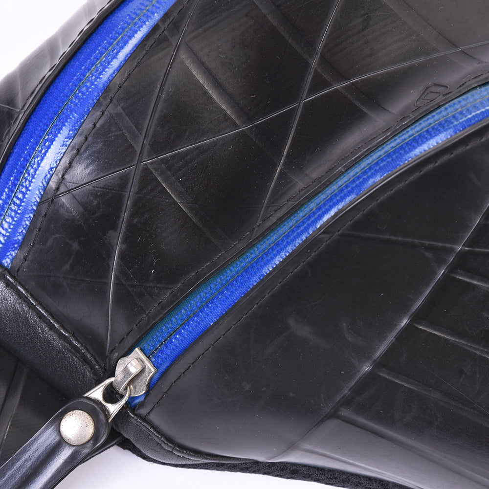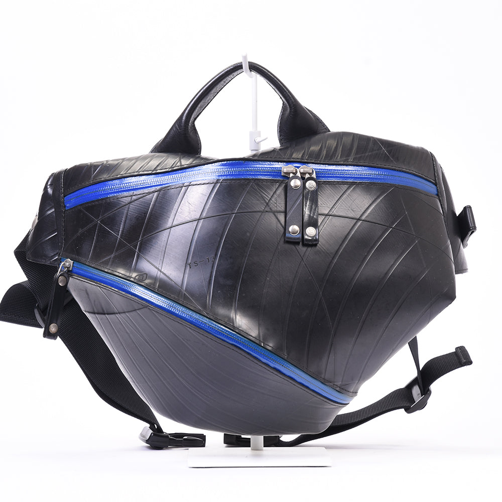 独特のトライアングルフォルムが人気のワンショルダーTRIANGLE LARGE。ipadなどのタブレット端末専用ポケットのついた内部機能。ゆったりとした大容量ながら、独特のフォルムが背中での存在感が抜群です。分割された小物収納部分にはスマートフォンがしっかり入る緩衝剤入専用ポケットを設置。ちょっとした移動の時に便利な手持部分には、手にしっとりと馴染む本革を採用した細部にまで拘りの詰まった逸品です。タイヤチューブと止水ファスナーのコンビネーションは、雨や衝撃から中身の大切な荷物をしっかり守ります。 ここのワンショルダーバッグ TRIANGLE Largeは、一個辺り約810gのCO2が削減されます。