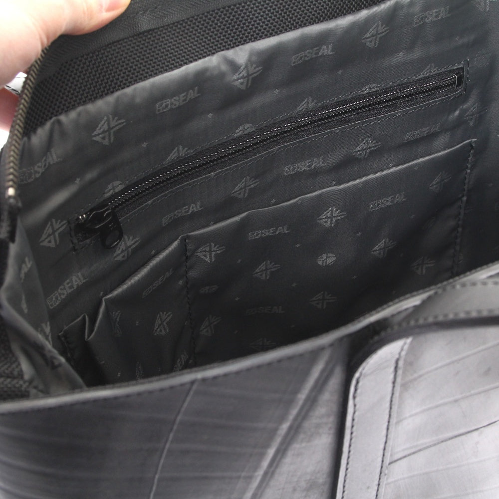 タイヤチューブを全面に使用したSEALらしいトートバッグ。シンプルなデザインと機能性は癖が無くどなたでも、どのようなシーンでも使い易いバッグとなっております。底鋲とマチ幅もあり、自立もしてくれます。この製品はサンプル品だけの1点、特別モデルです。