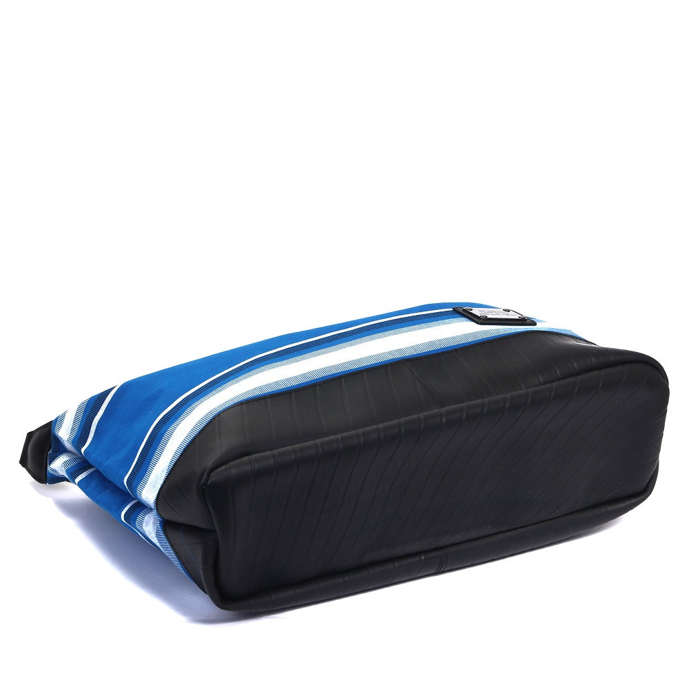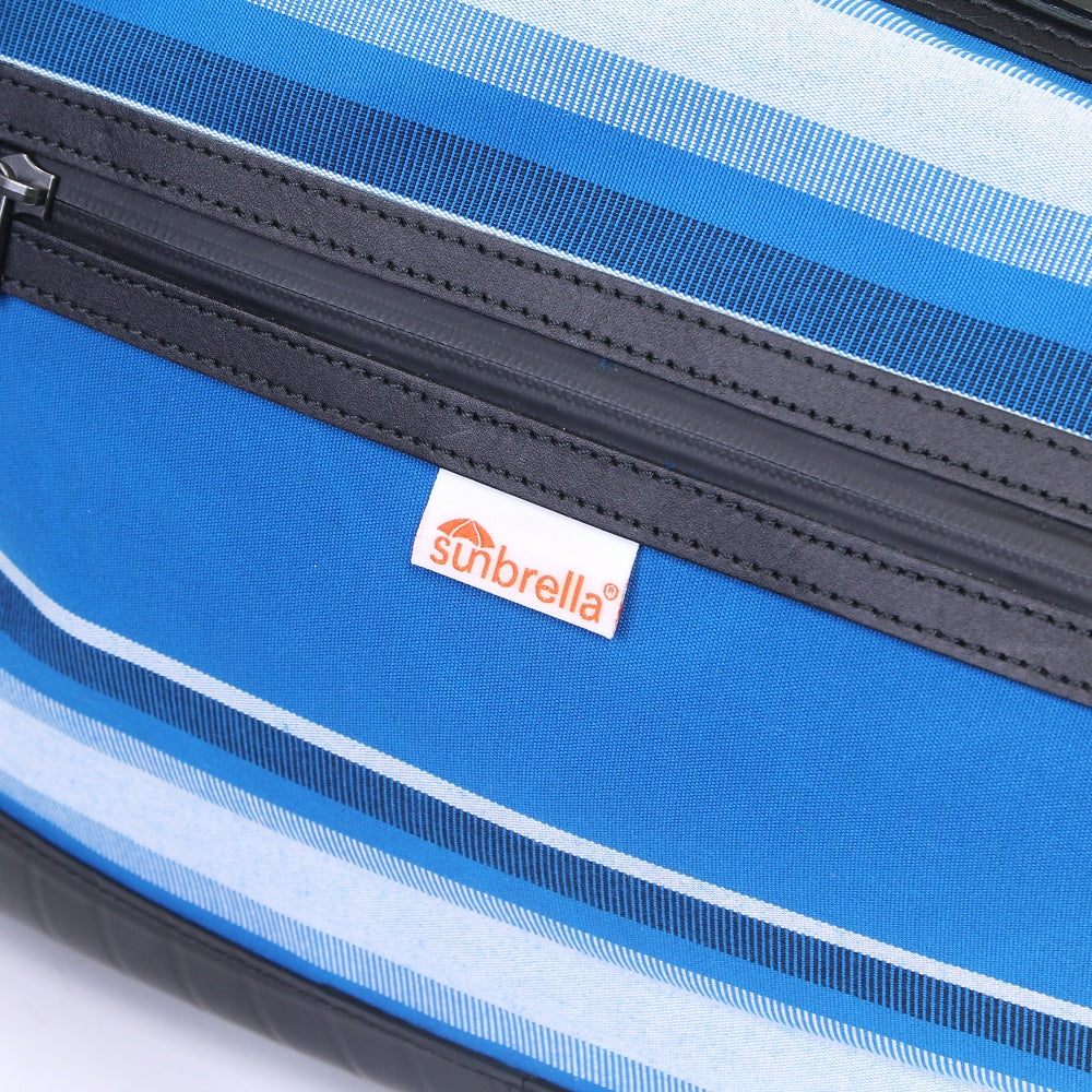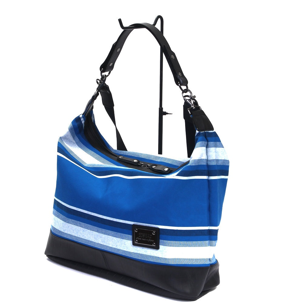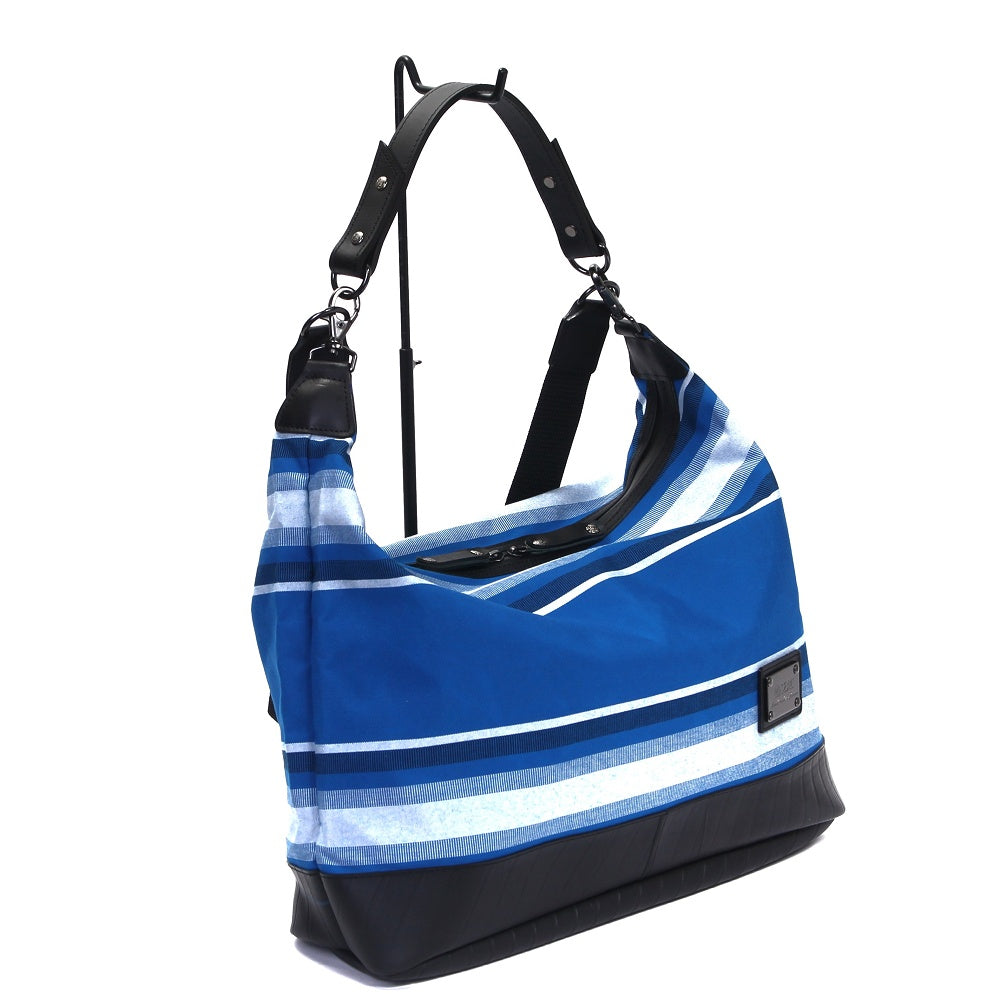 アメリカで1961年に誕生したファブリックブランド「サンブレラ」とのコラボモデル!原料段階で着色するアクリル原着糸を使用している事により、屋外で長期間紫外線に曝されてもほとんど色褪せる事がないタフななサンブレラの生地は、大切な荷物を雨からしっかりと守りデイリーユースでタフに活躍します。ストライプテープには素材の違う2種類の糸を使用し、光の加減により浮かび上がる一味違った大人の色気を演出します。肩掛け、手持ちで使用できる2wayタイプで、底面にはタイヤチューブを使用していますので屋外でも気兼ねなくご使用いただけます。
