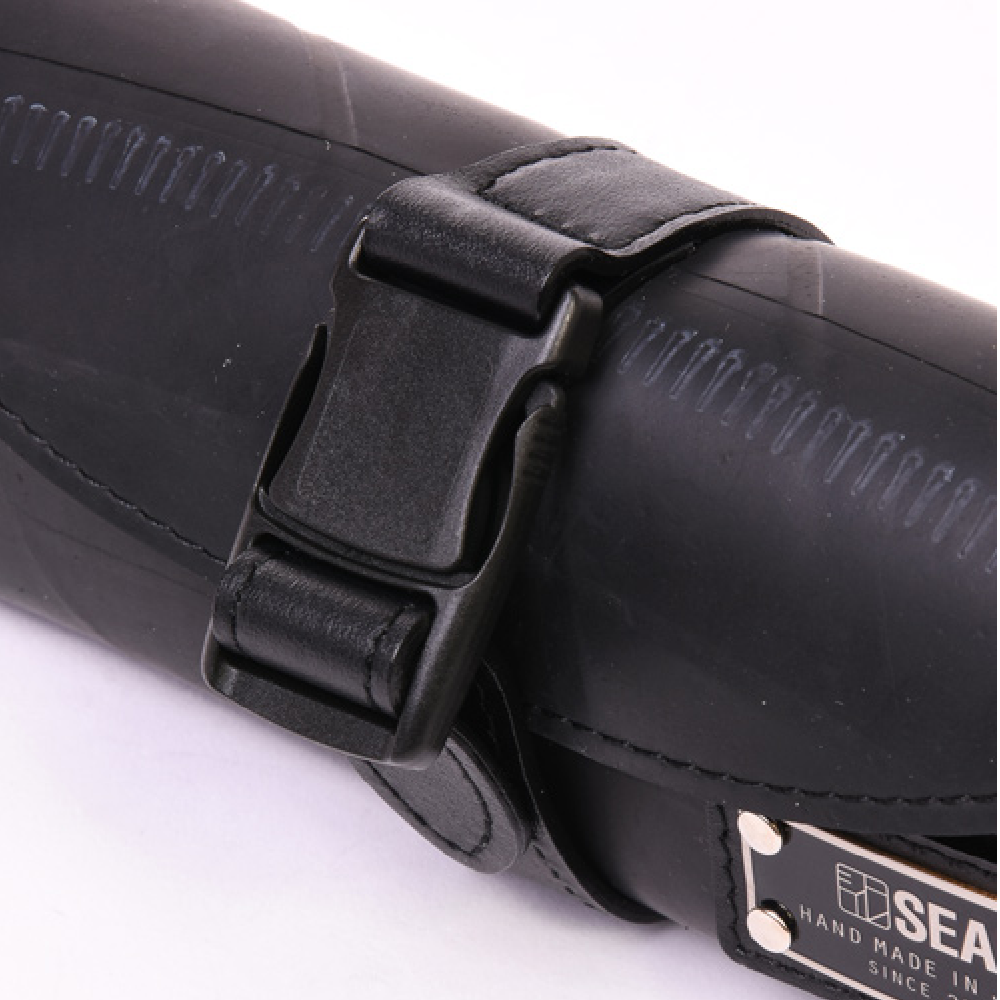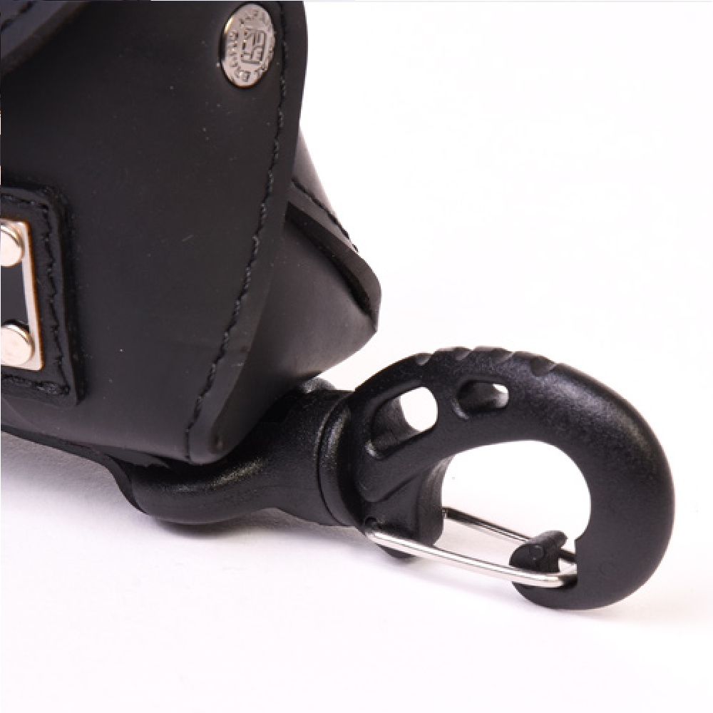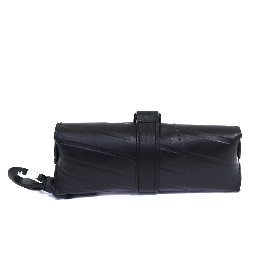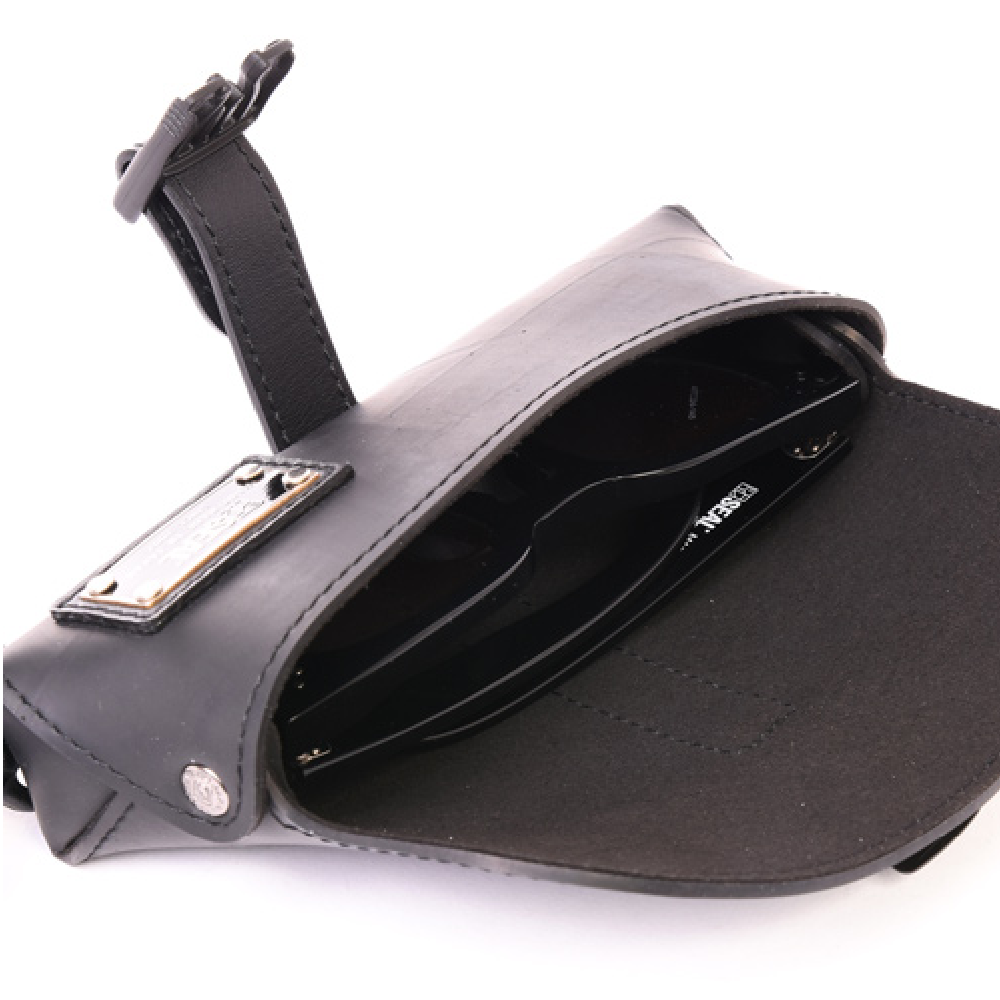 タイヤチューブで作られた特別なグラスケースが外部の衝撃から大切なメガネを守ります。 グラスケースには専用のカラビナを搭載しており、ベルトやバッグなどに容易に取り付けが可能です。 柔らかな内装と、鼻当て用の台が様々な種類のグラスにしっかりフィット。 内部でグラつくことなく、しっかりグリップするグラスケースです。