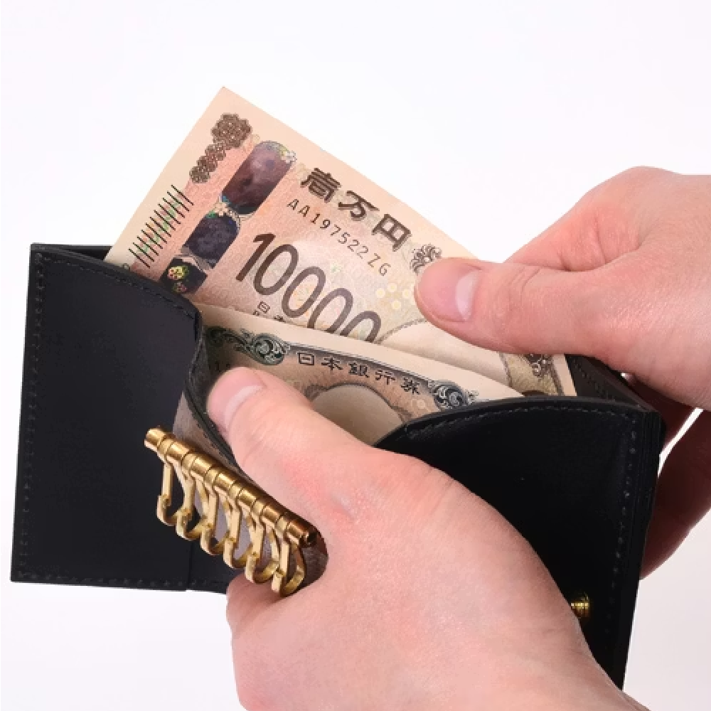 • 外見はキーケースですが、その他に「お札入れ」「小銭入れ」「カード入れ」の機能を備えた逸品。