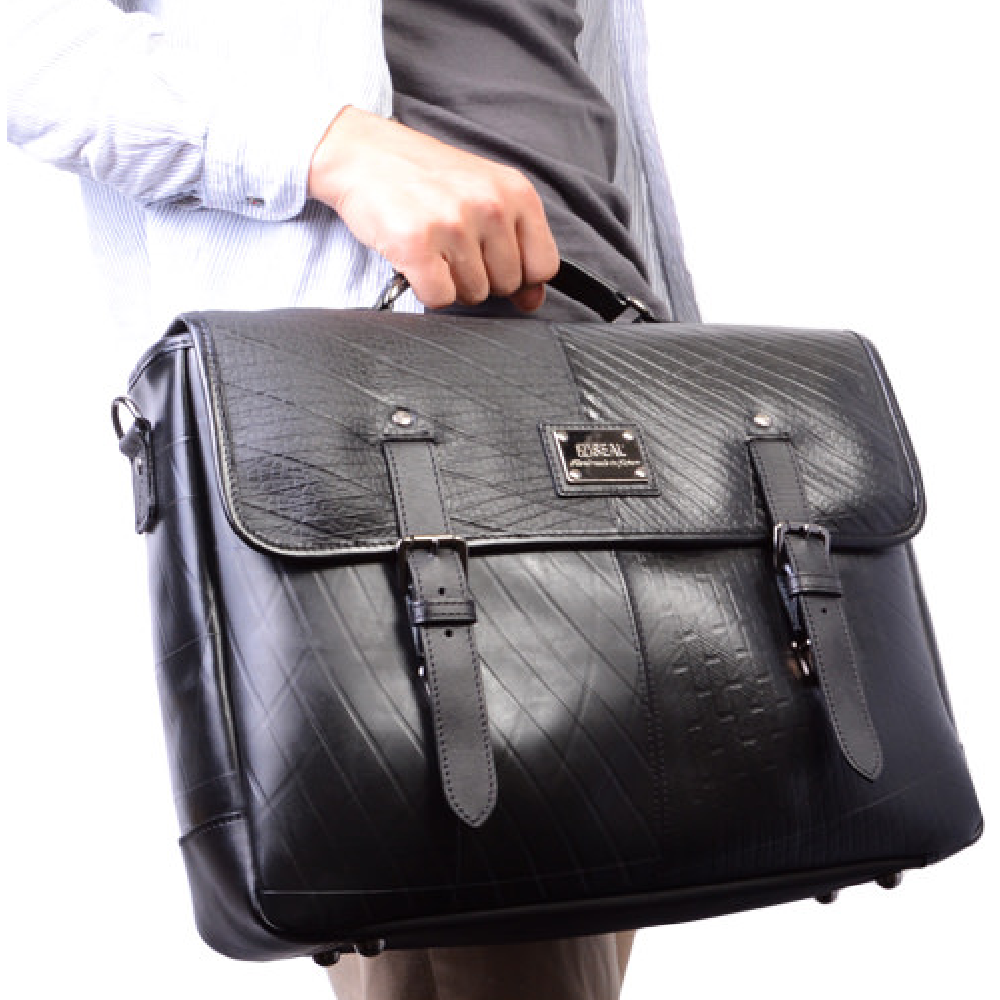 シャープでクラシカルな印象を持つシングルハンドルのブリーフケースがSEALから登場。日本の職人がひとつひとつ丁寧に作り上げた本革製のハンドルは、疲れにくく堅牢な作りになっております。背面には長財布やタブレットなども収納できる大きめの止水ファスナーポケットを搭載。さらに緩衝材も入っておりますので、中のものを水や衝撃からしっかりと守ります。背面ナイロンに搭載されている緩衝材により、ショルダー装着時に体への負担を大幅に軽減してくれます。 またショルダーベルトも50mmと幅広のものを使用しておりますので、重い荷物にもストレスなく持ち運びいただけます。フラップを開ければ13インチのノートPCが余裕で入る開口部。内部には、窓枠に本革を採用し強度を増したファスナーポケット。 また、本革でパイピングしたオープンポケットを2つ搭載。さらに、間口はしっかりと閉まる仕様になっておりますので、防犯性、防水性にも長けています。 この2WAYブリーフケースは、一個辺り約1,680gのCO2が削減されます。