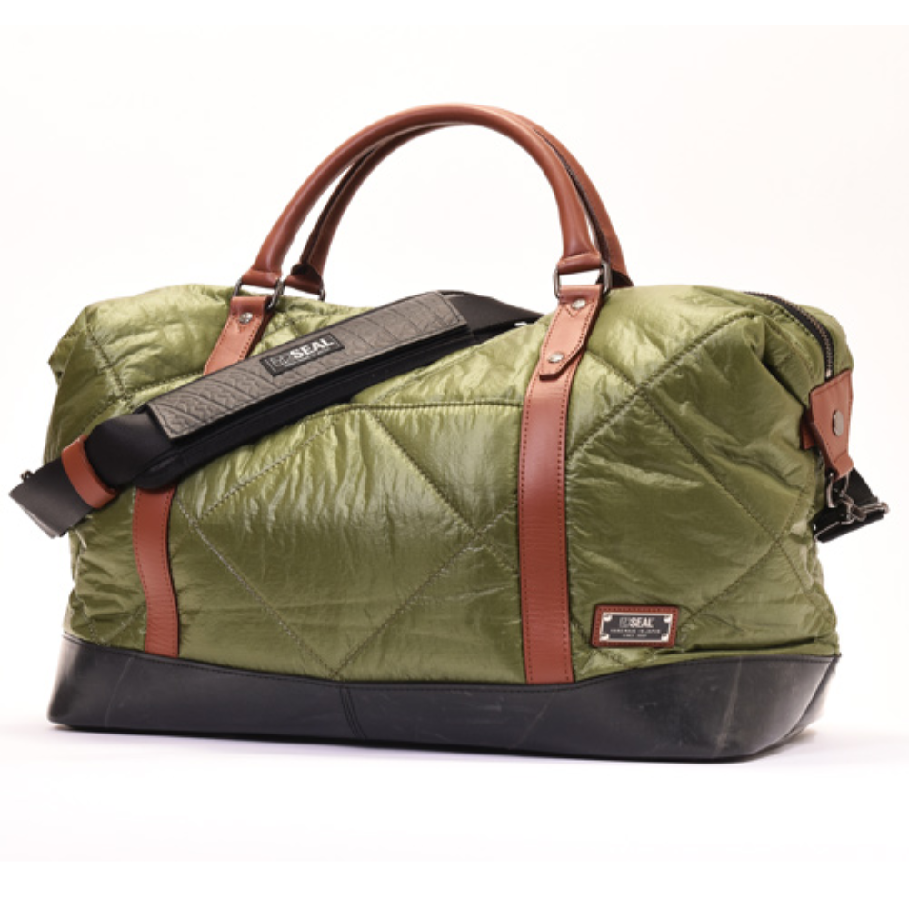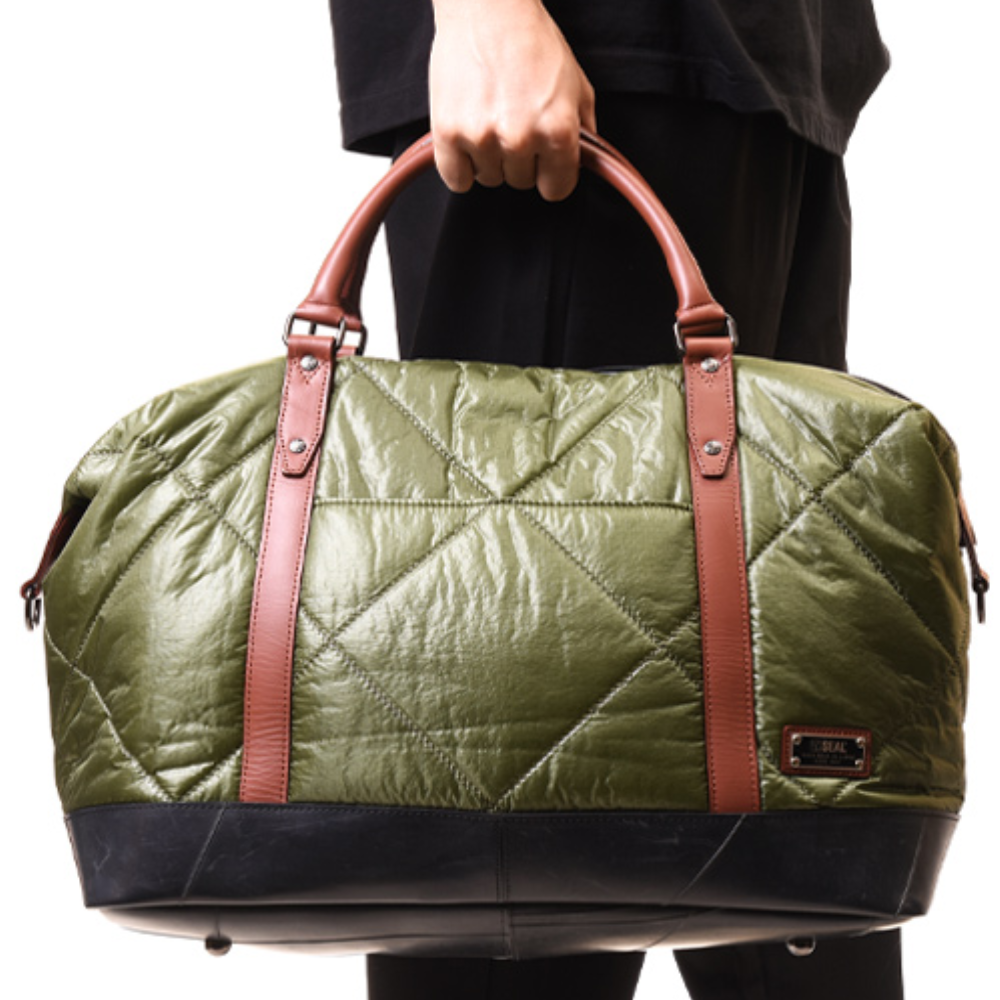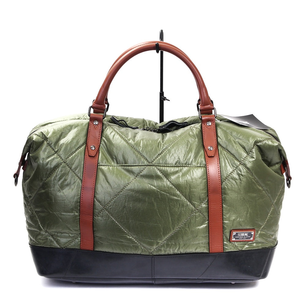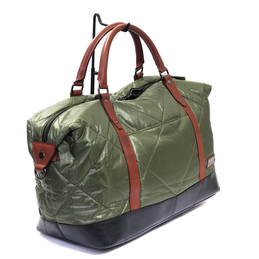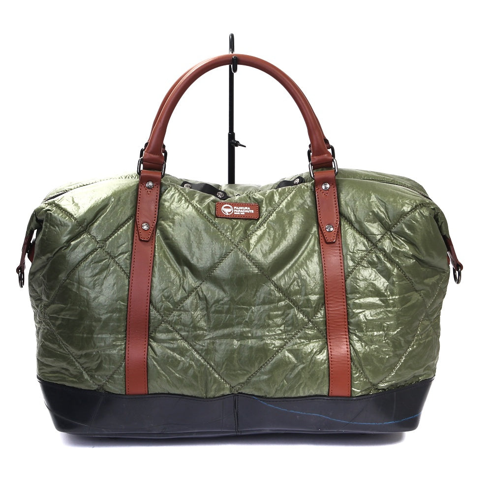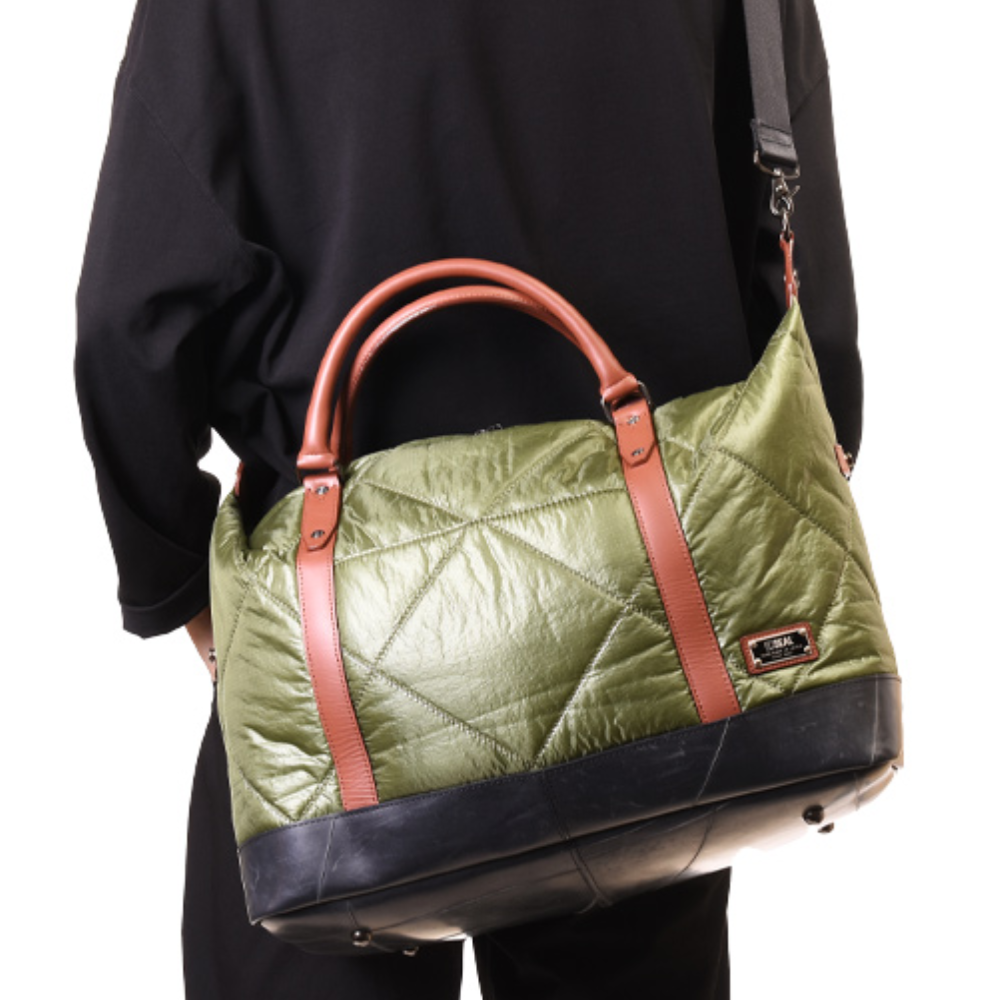 自衛隊にも採用される「藤倉パラシュート」をキルティング加工した軽量ボストンバッグ。 非常に薄く軽量なパラシュート素材を国内職人によりボンディング加工をし、さらにキルティング加工を施しております。 約26リットルの大容量ながら900gという驚きの軽さ。 1~3泊の旅行はもちろんの事、普段使いもできる計算されたサイズが魅力です。 オリジナルのダイヤルロックを付属、ショルダーベルト付属など、様々な機能を搭載。 この藤倉航装コラボ/ボストンバッグ AIR MODELは、一個辺り約950gのCO2が削減されます。