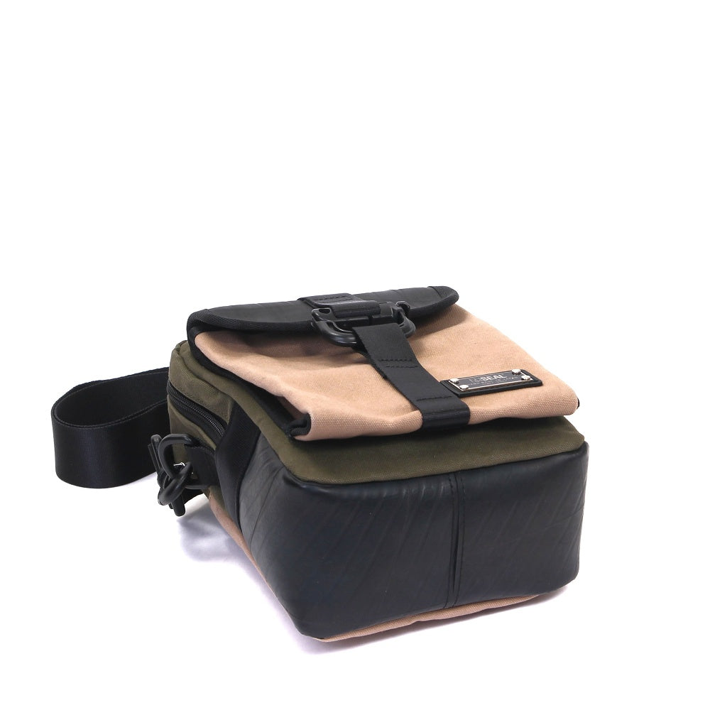 「10年使える」をコンセプトに作られた使いやすいサイズのショルダーバッグ。【10年無償修理保証付き】 メイン素材にはアメリカ連邦規格(FEDERAL SPECIFICATION)CCC-D-771Aにより定められた本物の”ミルスペック ”の コットンを採用。米陸軍の軍需物資として多く使用されています。 一般的なコットンダックよりも超高密度で織りあげることにより、ハリ感・コシ感が全くの別物です。 パラフィン加工を施すことにより防水性も兼ね備え、ハードナチュラルな雰囲気になっています。 さらにバックルにもミルスペックのグリムロックを採用。 プッシュスイッチ式の開閉システムは、しっかりホールドするだけでなくグローブ装着時も問題なく開け閉めできます。 フラップポケットには拡張機能を搭載。マチは4cm広がり厚いものも収納可能です。 さらにフラップポケット裏には、一見するとわからないシークレットポケットを搭載しています。 耐久性だけでなく防犯性にも優れたショルダーバッグになっております。 このショルダーバッグ/ARMY DUCKは、一個辺り約840gのCO2が削減されます。