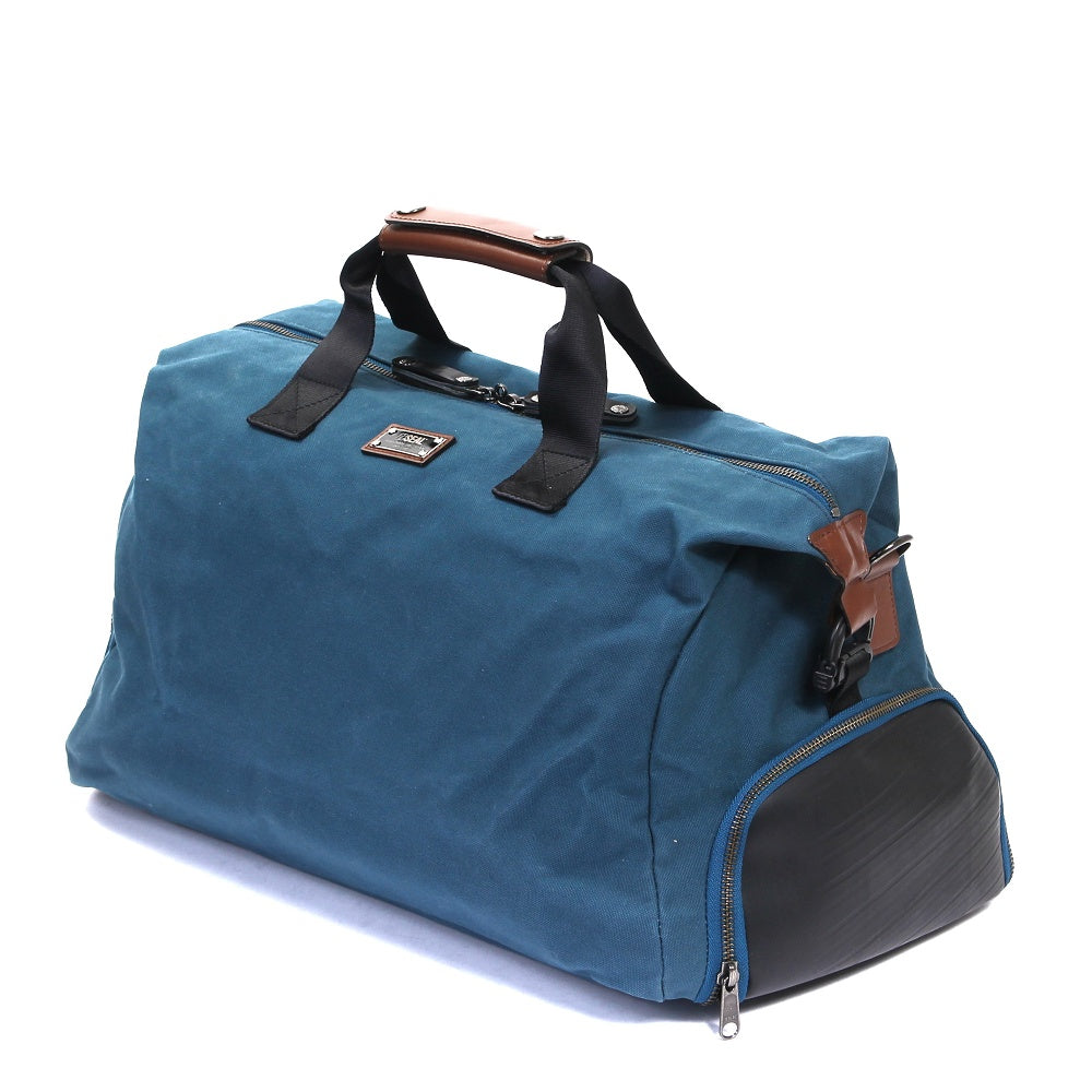 「10年使える」をコンセプトに素材・作りを厳選した強靭ボストンバッグ。【10年無償修理保証付き】 メイン素材にはアメリカ連邦規格(FEDERAL SPECIFICATION)CCC-D-771Aにより定められた本物の”ミルスペック”の コットンを採用。米陸軍の軍需物資として多く使用されています。 一般的なコットンダックよりも超高密度で織りあげることにより、ハリ感・コシ感が全くの別物です。 さらにパラフィン加工を施すことにより防水性も兼ね備え、ハードナチュラルな雰囲気になっています。 アウトドアシーンやキャンプにも活躍する強靭な素材、汚れを気にせず置ける、底面タイヤチューブ仕様。地面に直接おいても問題ありません。 内容量は約45リットル、3〜4泊の旅行やキャンプにも安心してお使いになれます。 さらにサイドに2つの独立ポケットを搭載し、靴や汚れ物など、他のものから離しておく必要のあるものを収納するのに便利です。 このウイークエンダー/ARMY DUCK(10年保証)は、一個辺り約3150gのCO2が削減されます。