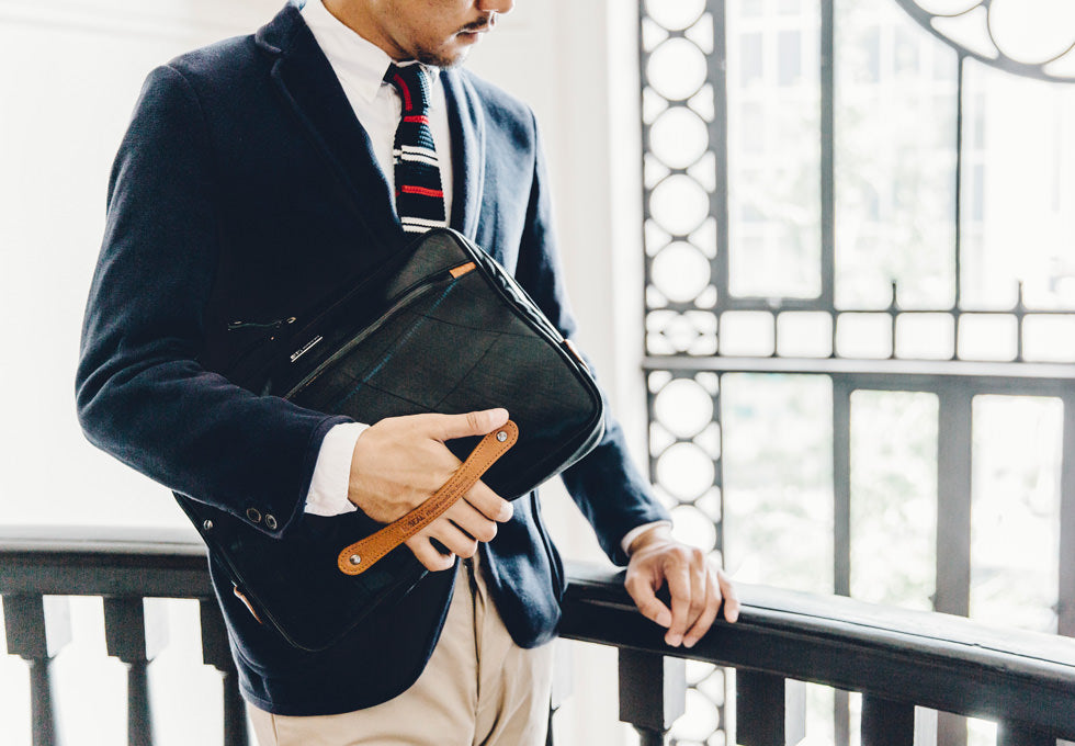 類い稀なる防水性能を誇る、「クラッチバッグwaterproof」。雨の日でも気兼ねなく持てる全面止水ファスナーの防水仕様。持ちやすい革ハンドル付きでアクシデントによる落下も防止してくれます。背面には利便性に優れた、モバイルポケットを採用。内装にも多彩なポケットを採用し、書類や荷物の仕分けに便利。中身が煩雑にならずに持ち運ぶことができます。外部止水ファスナーには開けやすく閉めやすいように革ベロを設置、止水ファスナーでも難なく開閉することができます。 このクラッチバッグwaterproofは、一個辺り約945gのCO2が削減されます。