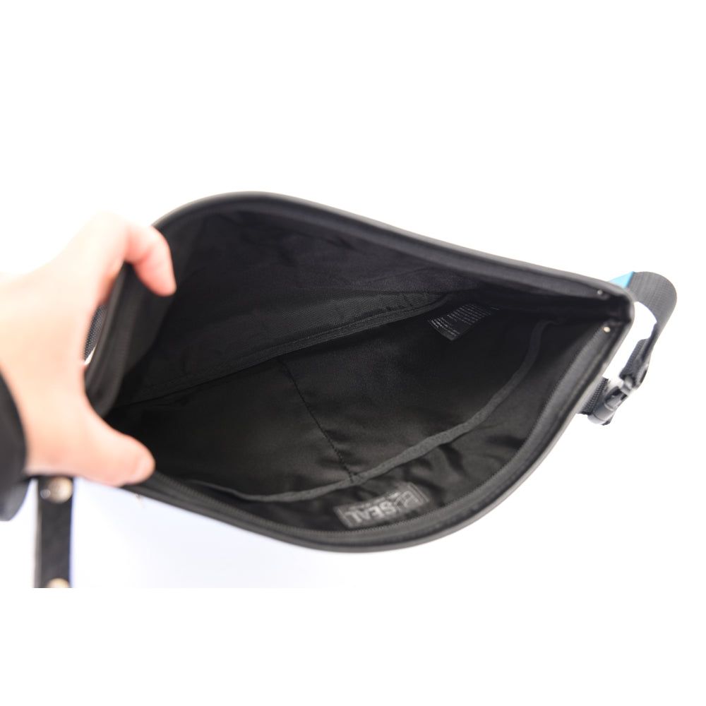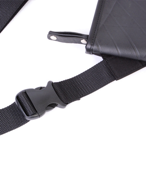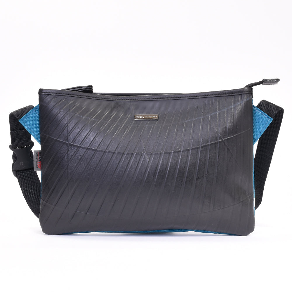 気軽に背負えるコンパクトなショルダーバッグとして人気のサコッシュバッグ。表面には防水性と耐衝撃性を兼ね備えたタイヤチューブ素材を、裏面にはシンコー株式会社が開発した新素材「BEATTEX(ビートテックス)」を使用しております。薄マチながらA4サイズも収納可能で、体にぴったりとフィットしアクティブな環境でも非常に使いやすいのが特徴です。使いやすいシンプルなデザインにより、重さはたったの370グラム。表面素材のタイヤチューブはリサイクル材をもとにしているので、一点ごとに表情が異なるまさに世界に一つだけの商品となっております。 このサコッシュバッグは、一個辺り約420gのCO2が削減されます。