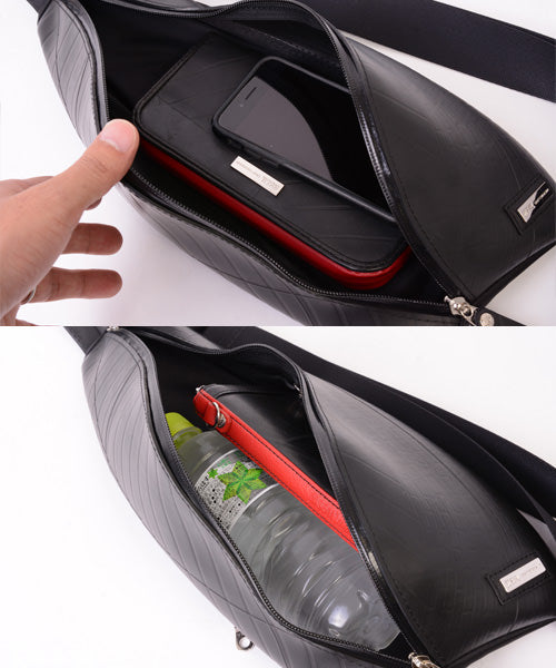 人気のワンショルダーバッグSPIRALのSLIMバージョン。タイヤチューブの形状を最大限活かす事により実現した独創的なスパイラルフォルムと、驚きの収納力を実現しました。