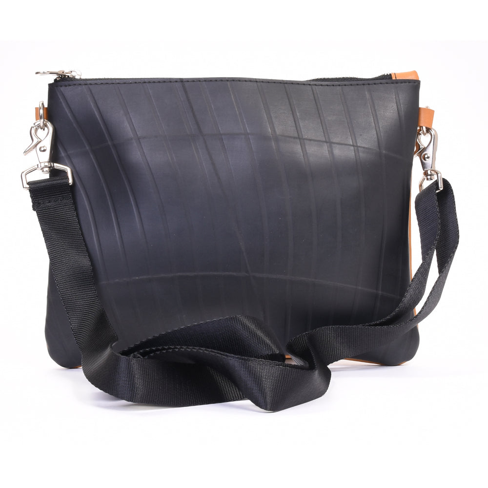 長財布やスマホ手帳などがすっぽり収まるジャストサイズのサコッシュバッグ。国内職人がタイヤチューブと本革で仕立てたボディで、洋服や気分に合わせてリバーシブルでご使用いただけます。発色を抑えた落ち着いた色合いの本革で、大人の魅力を演出します。内部には両サイドにオープンポケットとファスナーポケットを搭載しており、小物の収納も安心です。 この本革製リバーシブルミニサコッシュは、一個辺り約630gのCO2が削減されます。
