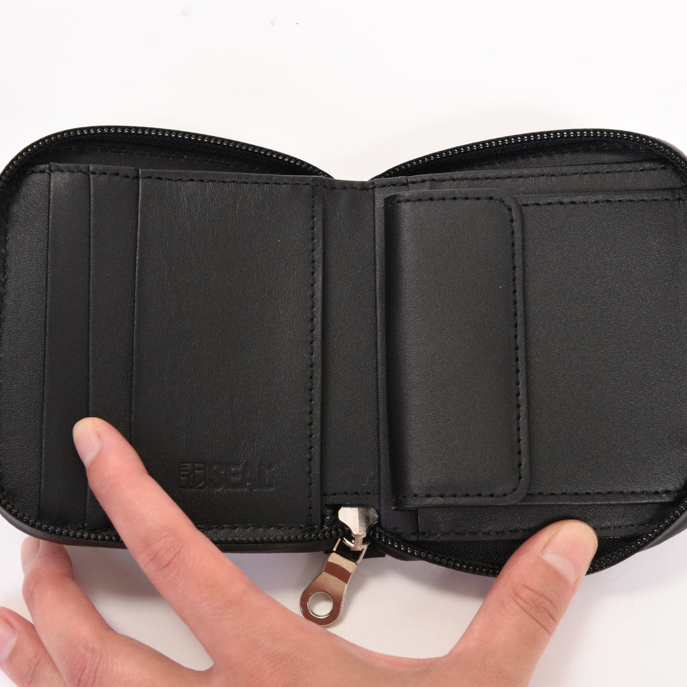 防水に特化した、コンパクトな2つ折り財布。コンパクトながら使いやすい計算された内装。 止水ファスナーをひとつ開ければ小銭、札、カードにアクセスできます。 タイヤチューブと止水ファスナーが作る圧倒的な防水性能が魅力。 突然の雨やアウトドアでも、水や汚れから内部のものを守ります。 シンプルな外観ながら、充実した内装、大容量をスマートに持ち運ぶことができます。 この2つ折り財布 waterproofは、一個辺り約210gのCO2が削減されます。