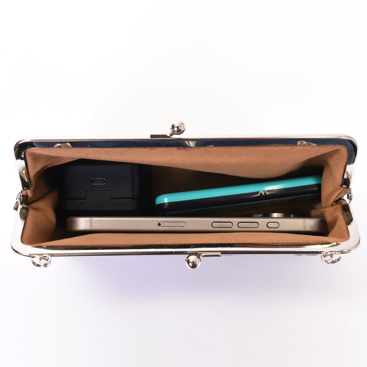 人気の高いがま口の開口部。スムーズな開閉を可能にしてくれます。レトロな雰囲気はコーディネートのアクセントにもおすすめです。