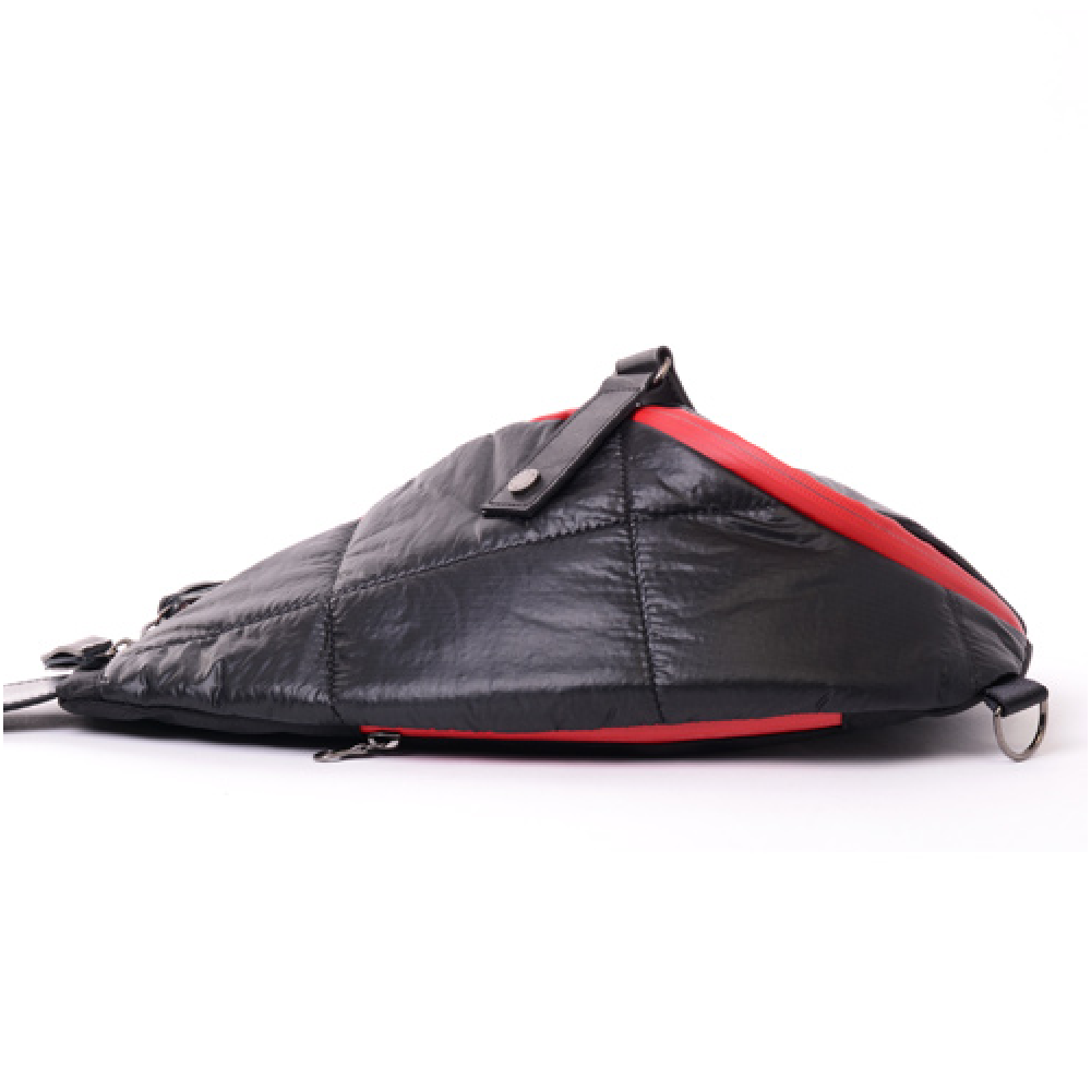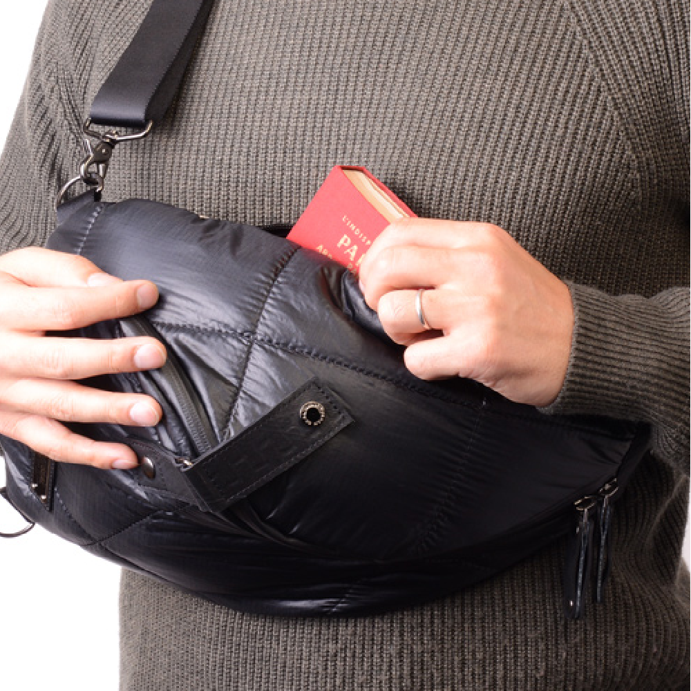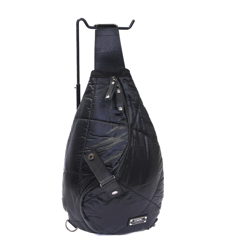 他にはない、圧倒的な特徴のスパイラル状のフォルムを持つワンショルダーバッグの藤倉航装コラボモデル。 自衛隊で採用されている同等の素材「藤倉パラシュート」を使った 超軽量のワンショルダーバッグが新登場。 非常に薄く軽量なパラシュート素材を国内職人によりボンディング加工をし、さらにキルティング加工を施しております。 それにより、丈夫で水に強いという特性を残し、重さ約300gという軽いワンショルダーバッグが実現。 ワンショルダーならではのスマートなデザインとシャツや本などでも十分入る収納力は普段使いや ちょっとした遠出にも活躍します。背面にはクッションが入っているので仕様時のストレスも最大限軽減します。 内部についた携帯ポケットや、地図なども入れる事ができるオープンポケットなど機能面も充実しています。 この藤倉航装コラボ/ワンショルダーバッグspiral AIR MODELは、一個辺り約630gのCO2が削減されます。